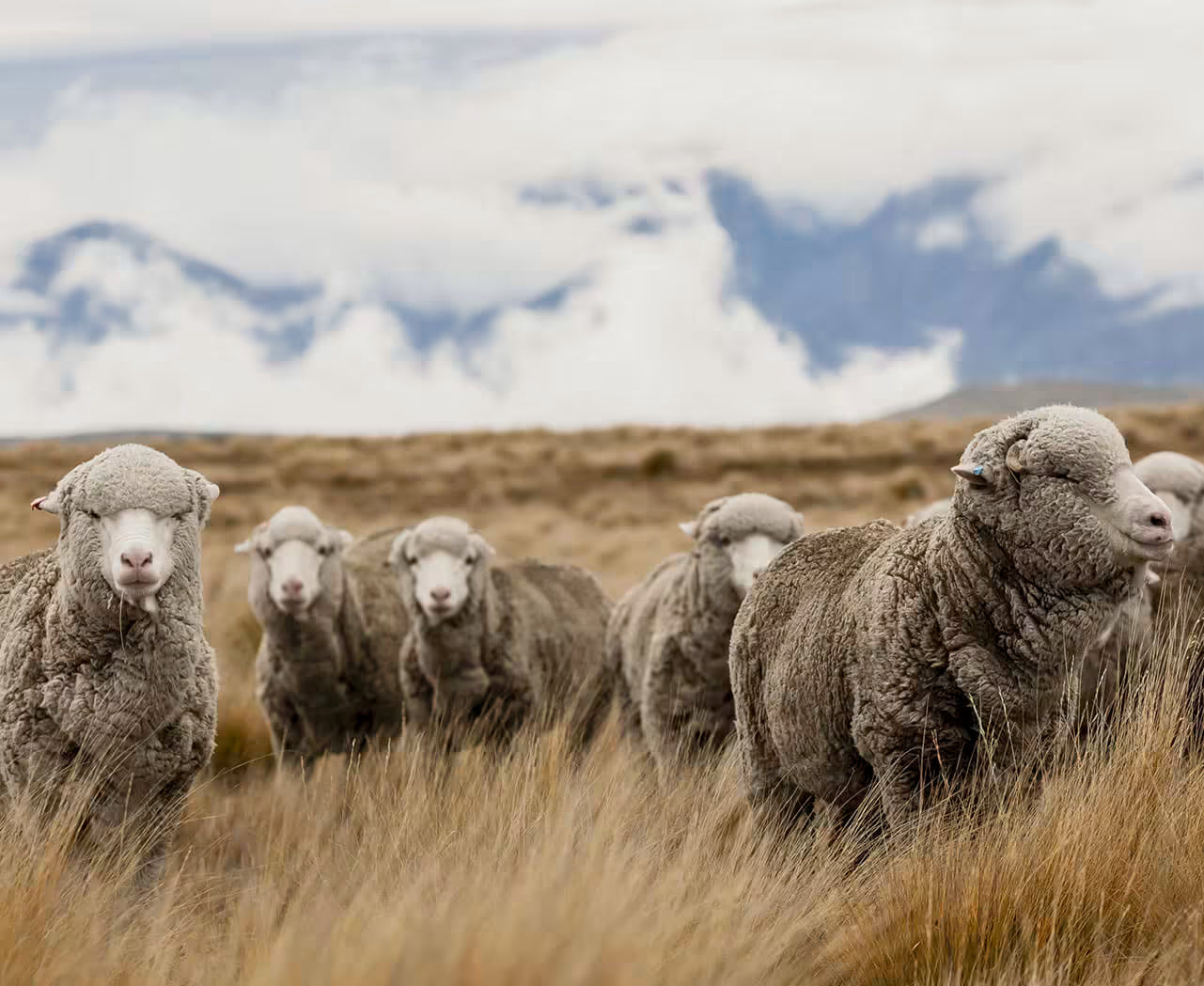 Ethically sourced wool products begin with flocks of hardy Merino sheep grazing on green grass in the shadow of jagged peaks. Our sheep are raised to roam. They always have access to clean water and ample food, shelter, preventive care, and speedy treatment, and often call thousands of acres home.