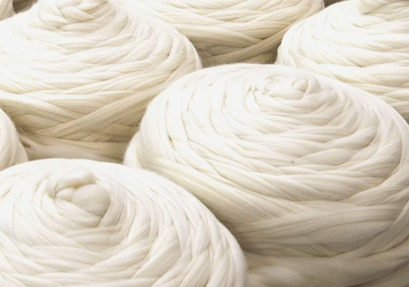 After mixing and washing the wool, fibers are smoothed out and are aligned to be parallel. Carding also introduces a small amount of twist—creating what’s called a wool sliver.